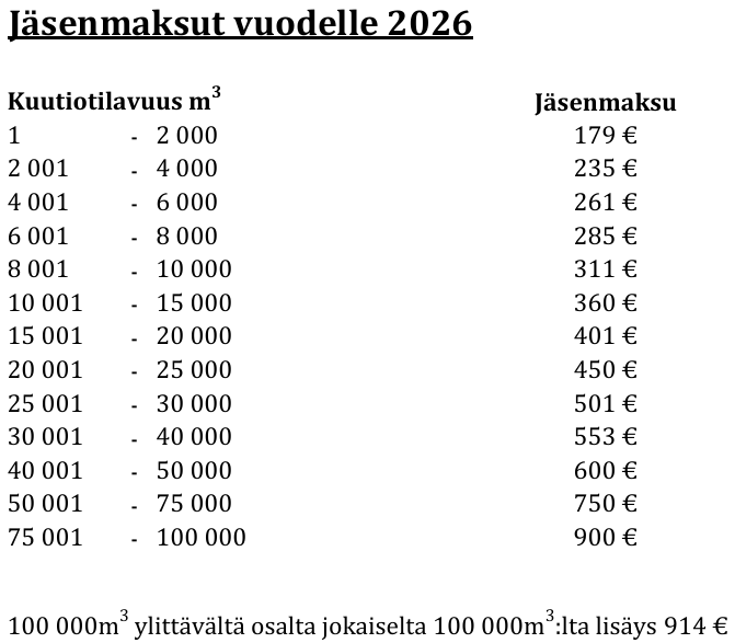 Jäsenmaksu määräytyy kiinteistön kuutiotilavuuden mukaan.